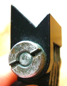 All this is much easier to do if you remove the shade from its mounting. You remove the shades bracket from the sextant (one screw) and look carefully at its structure. Usually, there is an adjusting screw one end. Remove this first. At the other end will be the head of the pin around which the shades rotate. The pin is prevented from rotating by a taper-pin through the bracket. Remove this by tapping on the _narrow_ end. Then tap out the pin by putting a short length of 1.5 to 2 mm rod, such as a piece of bicyle spoke into the screw hole and tapping it. If tempted to replace the screw a little and tap it, resist the temptation; it is easily bent. Sometime the pin is prevented from rotating by a grub screw and, Sodd's Law being what it is, it is nearly always rusted in place. Sometimes there is a screw driver slot each end of the pin, just to make life difficult. Look carefully for a grub screw at one end. This is the end that will not turn...