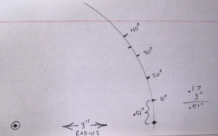 If +/- 1 degree is good enough then working with a ten degree chord on an arc should get the job done up to 40 degrees. Visual interpolation will get the single degrees.
