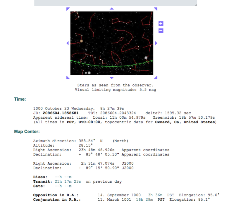 On CalSky scroll down to Map Center and you will see for Polaris year 1000 AD: