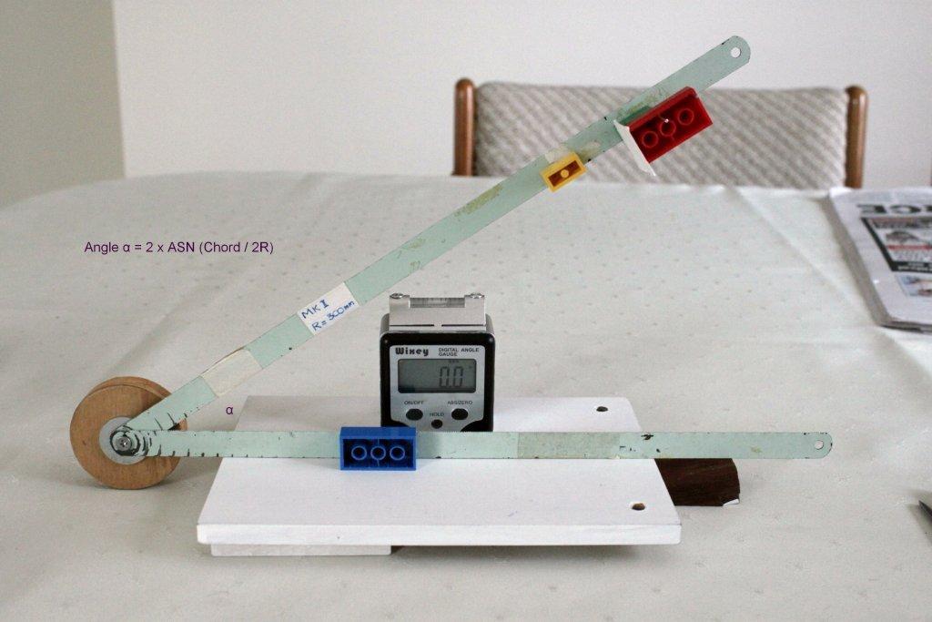 This instrument was fun to use even though a bit cumbersome. Large angles were made difficult by the increasing length of the chords involved .As might be expected, the results were not very accurate but it did generally give results to within half a degree or so. Most importantly it showed that the theory of measuring angles without a scale was possible in practice.