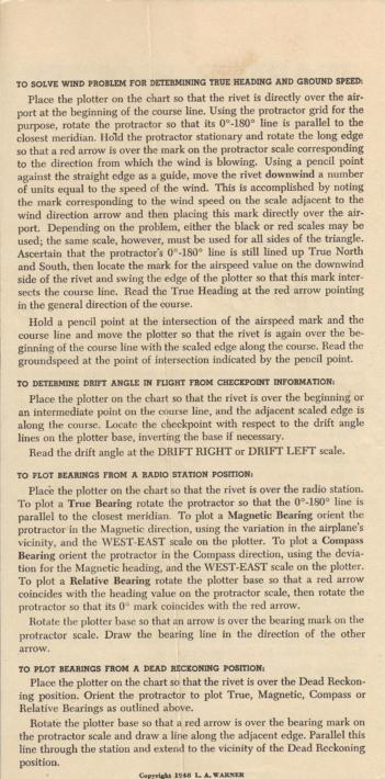 Years ago, my fiancé gave me her father's Warner Plotter. He was a pilot and aircraft mechanic. I just 're-discovered' it. It has instructions for figuring out drift problems without actually drawing the vector diagrams, as well as other techniques easily adapted to sailing. See attached images. I'm sure I'll find a million other uses for it as well.
