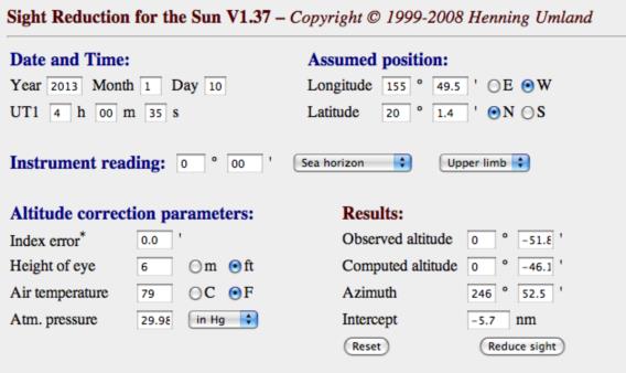 Sitting on a beach on the west side of the big Island of Hawaii, sans sextant, what is a frustrated navigator to do?