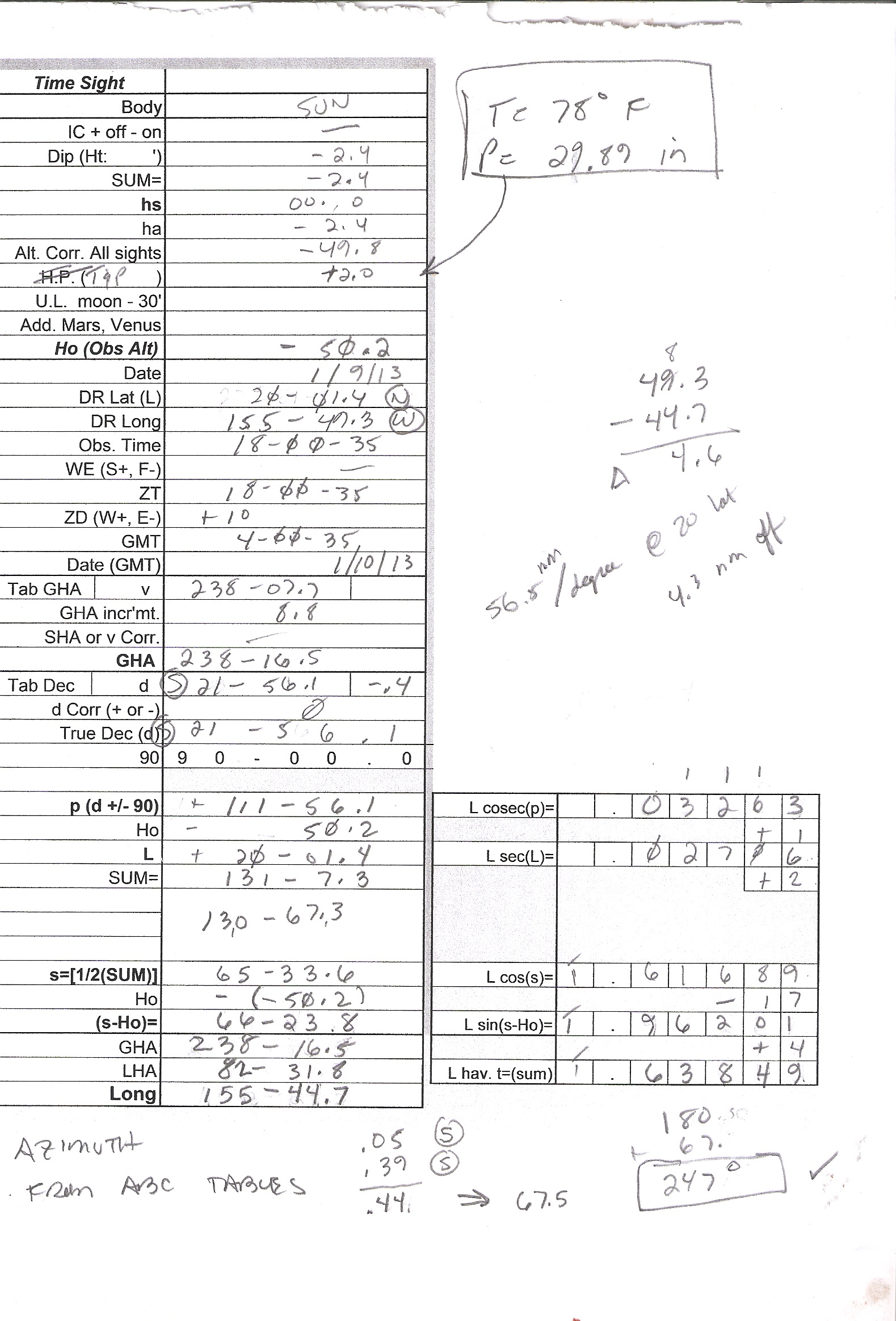 Wow, Great discussion. Really appreciate Frank's insight on the Sumner Line and the time sight, also the other great stuff sent my way.For me, the choice of the time sight and ex-meridian etc. comes down to my parameters for what I want from my navigation "solution".