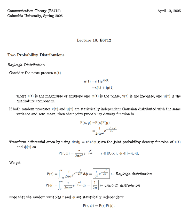'The Rayleigh distribution expresses the probability of an error of size r