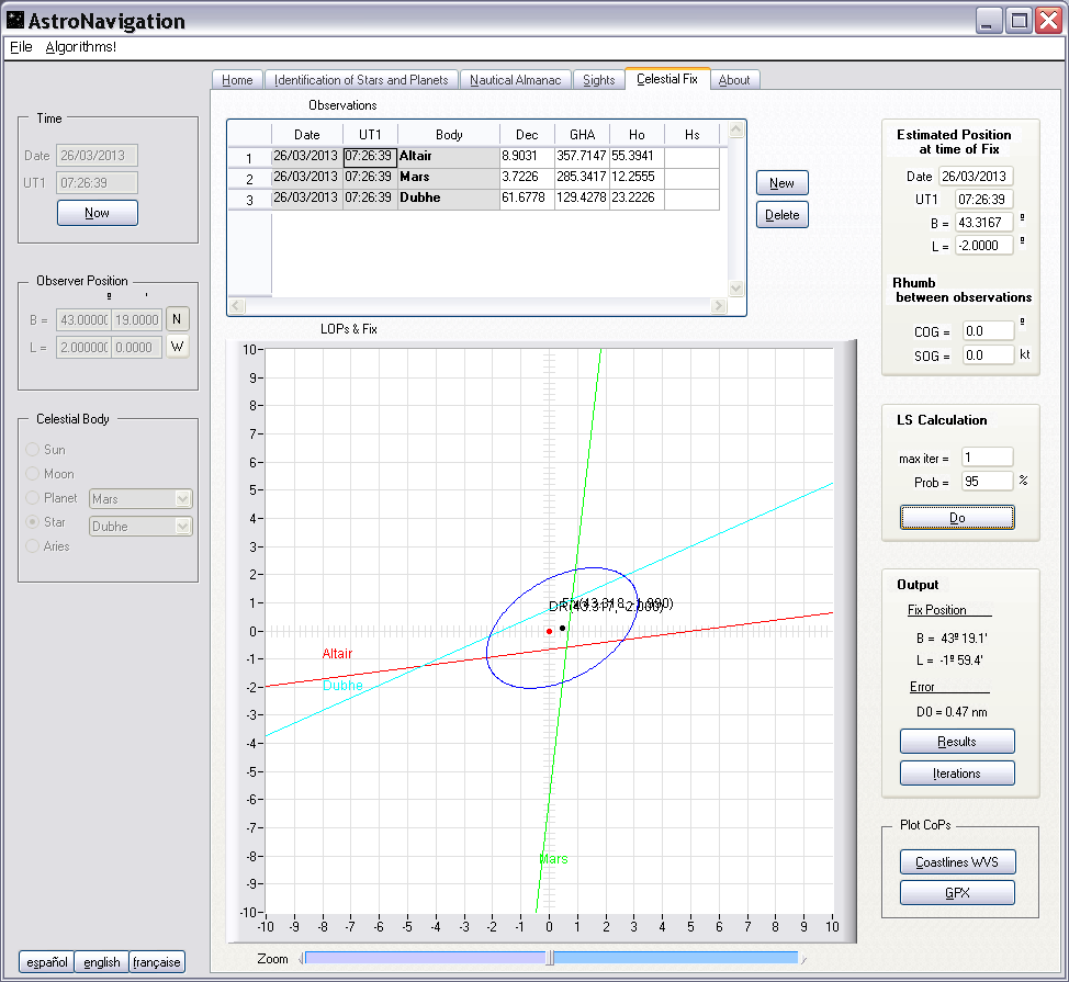 Attached a simulation, see the DR, the Fix and the corners of the cocked hat.