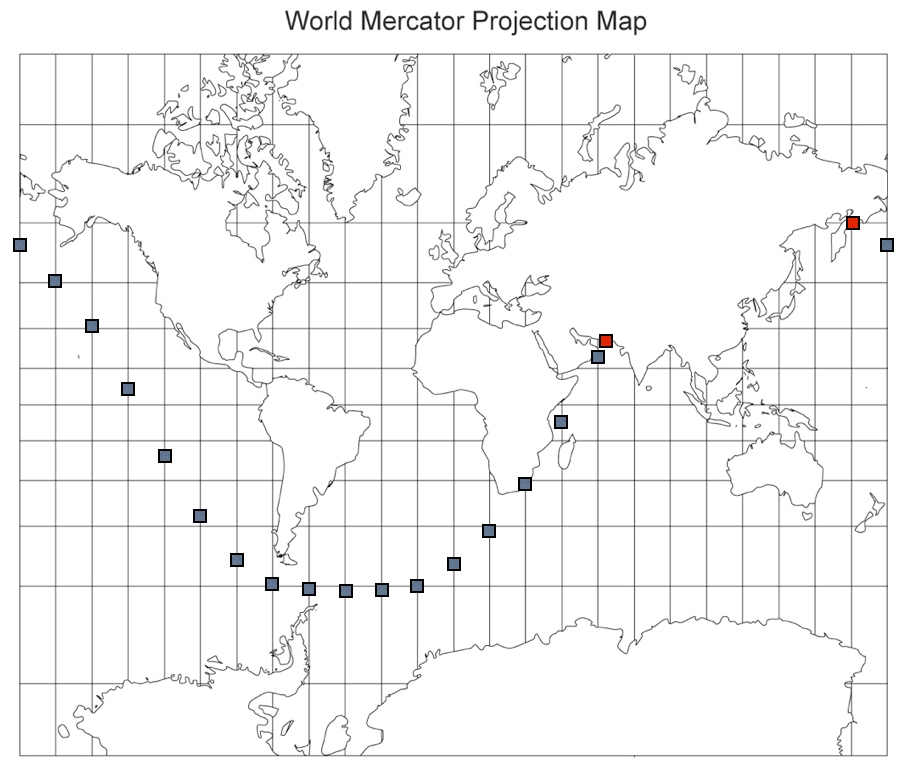 Arrive: Olyutorskiy zaliv, Russia 59°50'N 166°21'E.