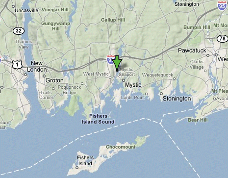 Mystic Seaport is located in southeastern Connecticut. You'll note that it's very close to