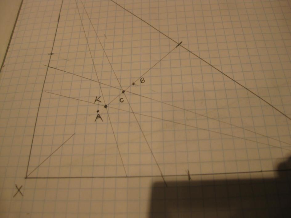 I have updated my diagrams of the two triangles to not show their Symmendian points, labeled "K" in each diagram. These points are also within the 0.0130 contour of John Karl's probability diagram (and may actually be his "+" mark)so is an equally valid point to take as the fix. ("A" is the Steiner point; "B" is the centroid determined by medians; "C" is determined by the bisectors of the angles. the same as bisecting the azimuths.)