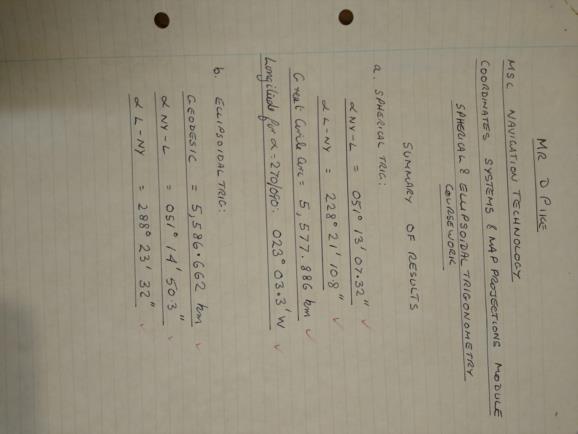 Well, I can think of one example although I'm not sure it passes the 'practical benefit' test: A subject for Master’s Coursework. We were asked to compare results for the great circle and the geodesic between London and New York. We were required to calculate the initial course in each direction plus the distances. It appears that in November 2000, I came close enough to understanding that sort of thing to gain full marks. Unfortunately, within 30 minutes of submission, it all turned to bagpipe music in my head. I enclose a photograph of my results by way of comparison between the two methods plus photographs of two out of nine pages of spaghetti numbers to indicate what fun was had producing them. Appologies for quoting results to one mm and 0.1 of a second and also if I've ever submitted these pages before. DaveP